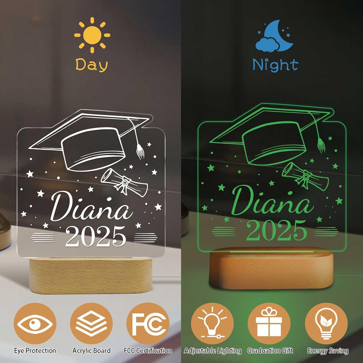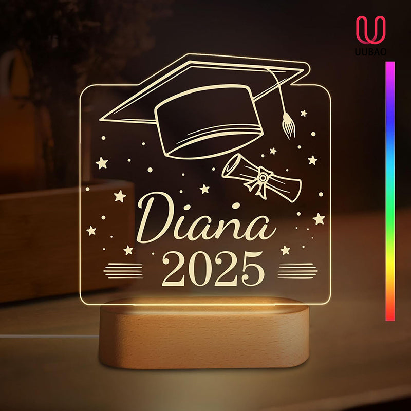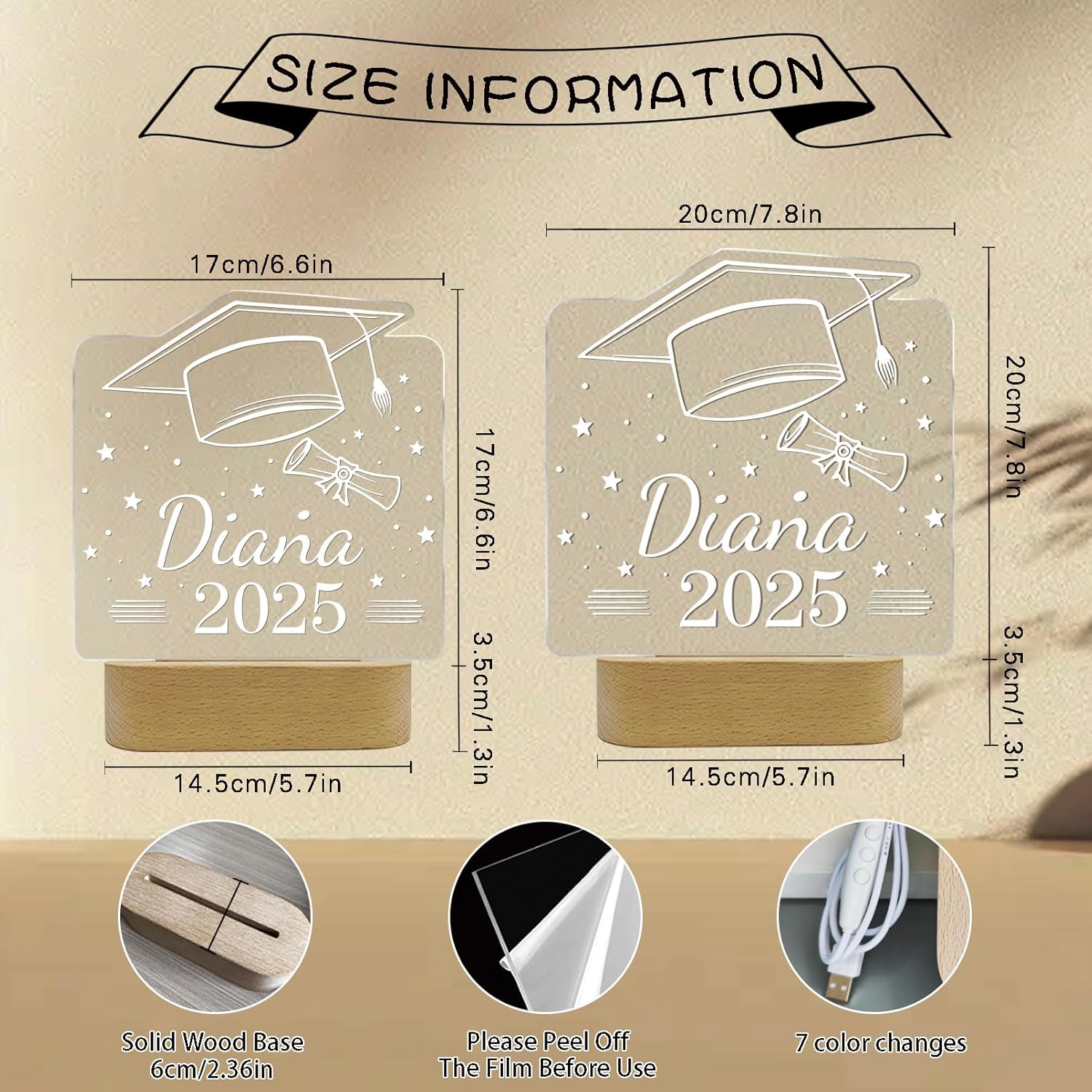 • 🎓【High Quality】This customized night light is made of high-quality transparent,acrylic, sturdy and durable, unbreakable,color never fade. Size:6.6x6.6/7.8x7.8in. The base of the night light is made of solid wood. In addition, it adopts laser engraving, the pattern is more bright and beautiful.