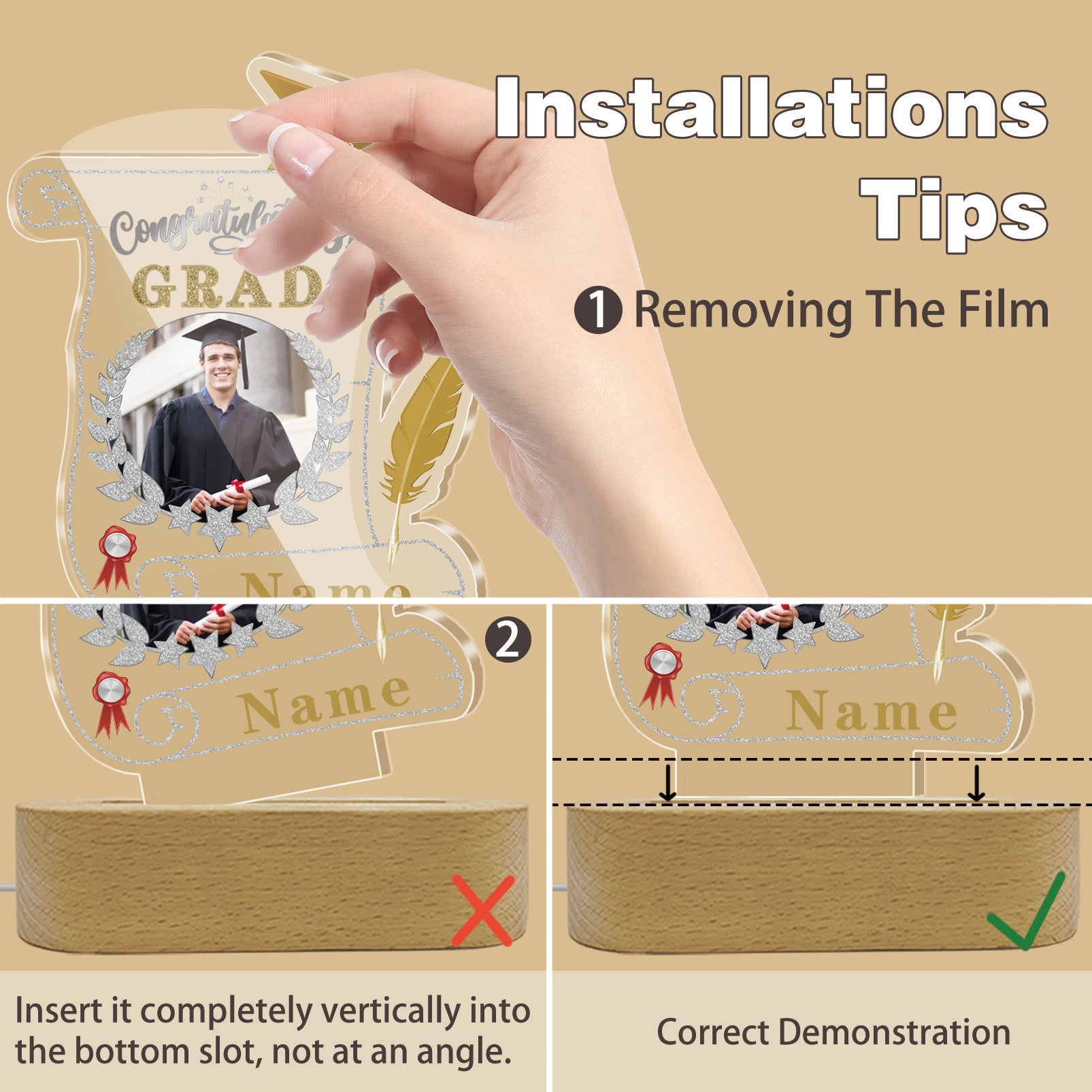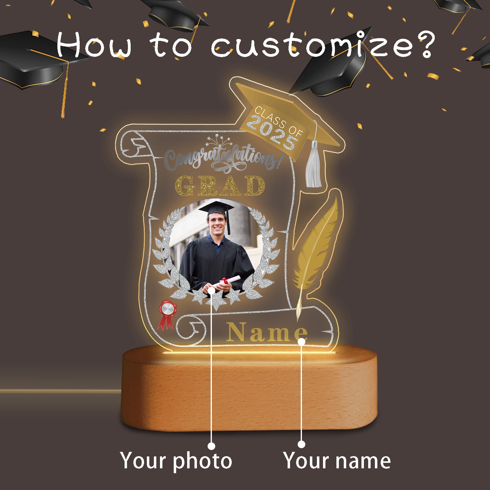 UUBAO Personalized Night Light Class of 2025 Graduation Gift for Junior High School College Teachers and Classmates(Champagne)