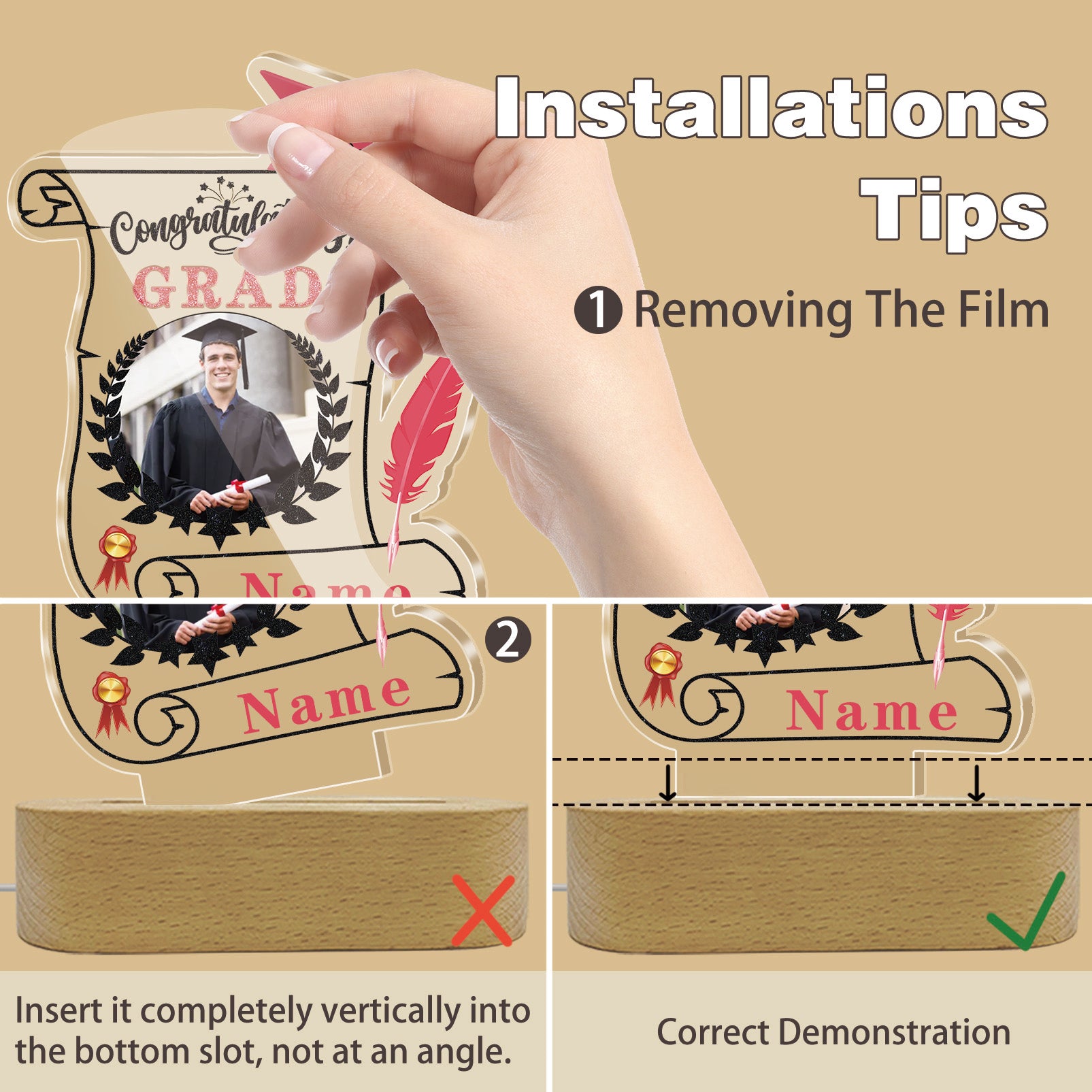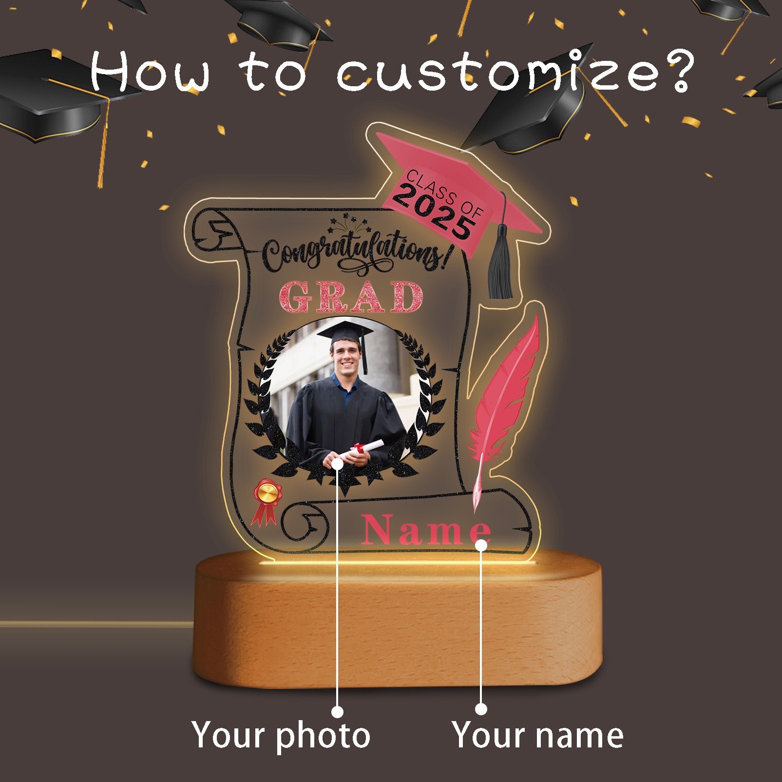 UUBAO Personalized Night Light Class of 2025 Graduation Gift for Junior High School College Teachers and Classmates(Pink)