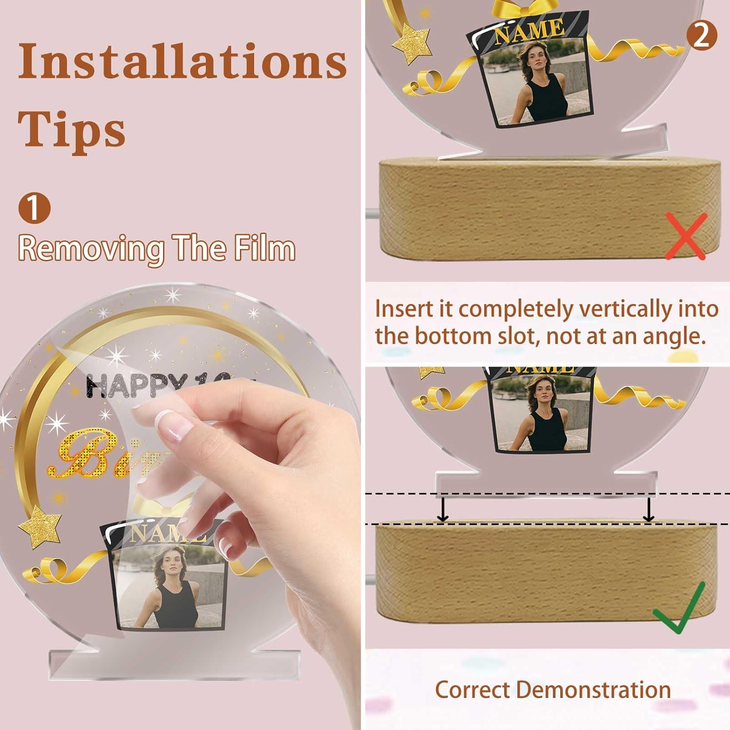 UUBAO Personalized Happy Birthday Night Light Gift with Photo Customized Acrylic Lamp for Her Mom Daughter Grandma Nana(Black and Gold)
