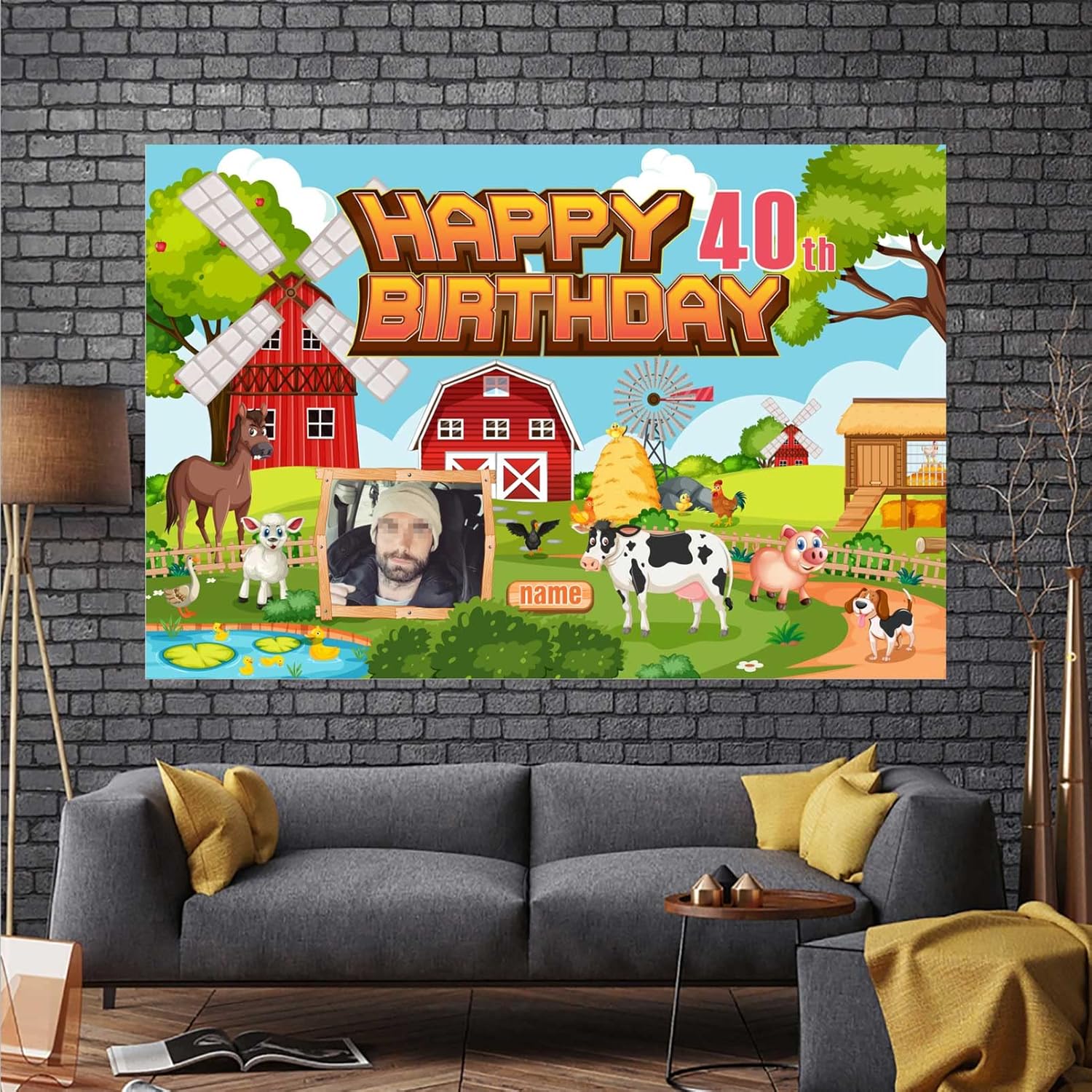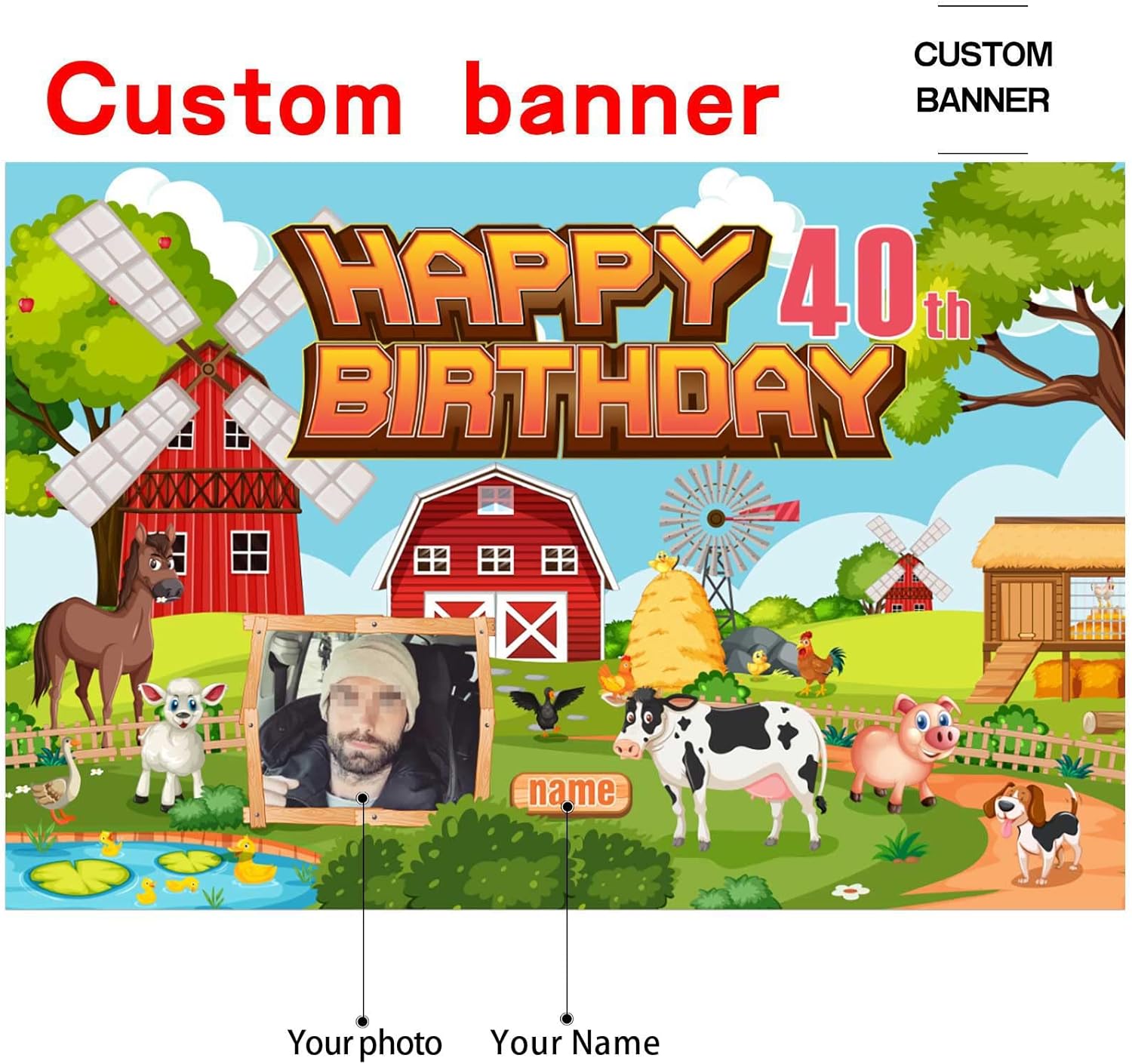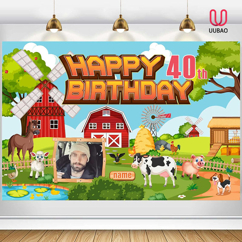UUBAO Custom Farm Theme Birthday Decorations Banner Personalized Fabric Banner for Birthday Party Supplies
